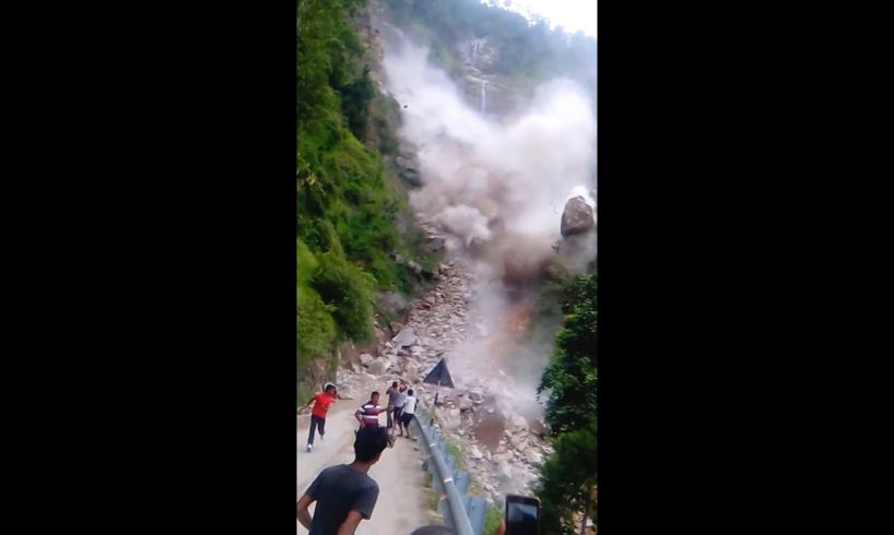 Shocking moment caught on camera when a massive landslide goes down a mountain and hits a road in Nepal. While most people were running away from the landslide, some of them came very close to film the event for social media, fortunately they were able to run away and evacuate just in time.