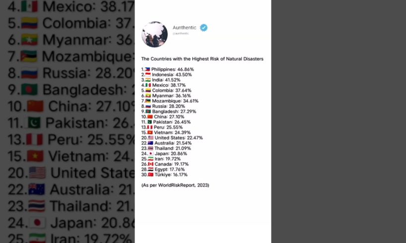 The Countries with the Highest Risk of Natural Disasters in the World 🌍 Aunthentic — January 31, 2024 3 comments Tweet on Twitter Share on Facebook Google+ Pinterest Spread The Viralist source Tweet on Twitter Share on Facebook Google+ Pinterest